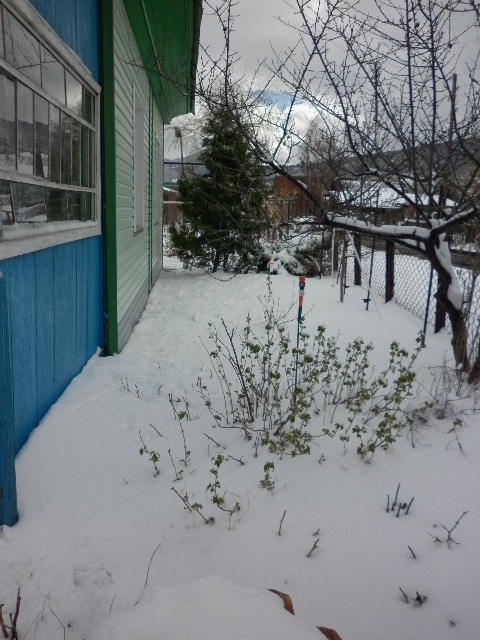 Зима вернулась. Ночью, на 23.04.2014 выпало около 25-30см снега.. При -4*С. Ожижается понижение до -11*С. При том, что первоцветы- Форзиция, Маральник уже цветут.. Груша, яблня, слива на цвету! Караул!