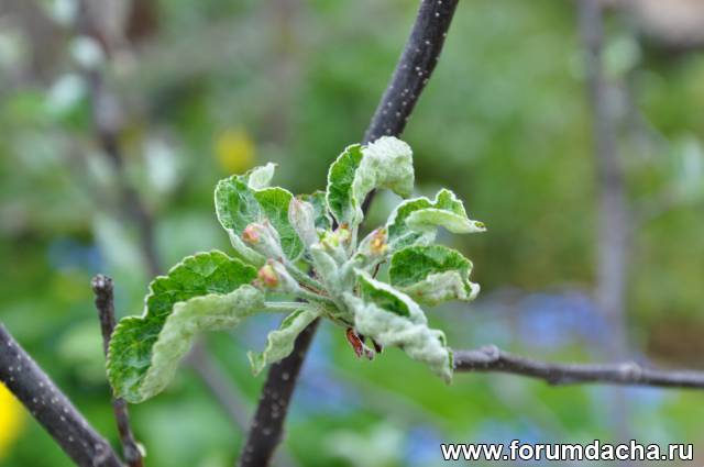 Что о начало расти.Белые хлопья в пазухах коры.