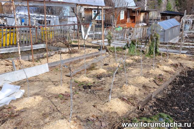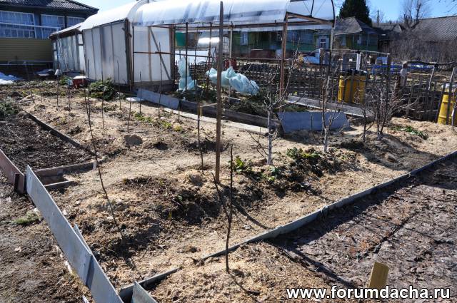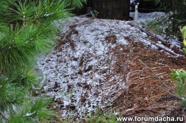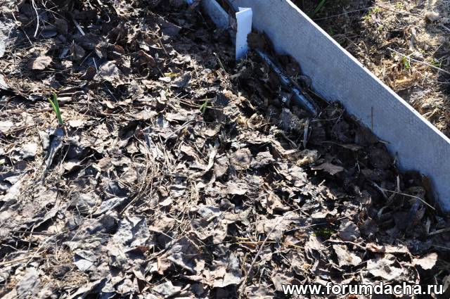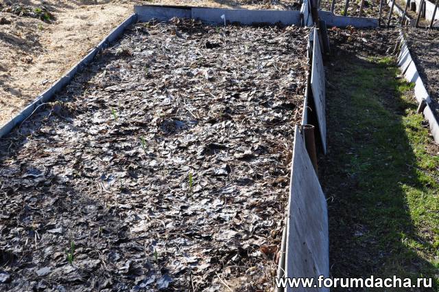 Сюда под листовую мульчу,вместе с чесноком,посадил семена краснолистных яблонь.