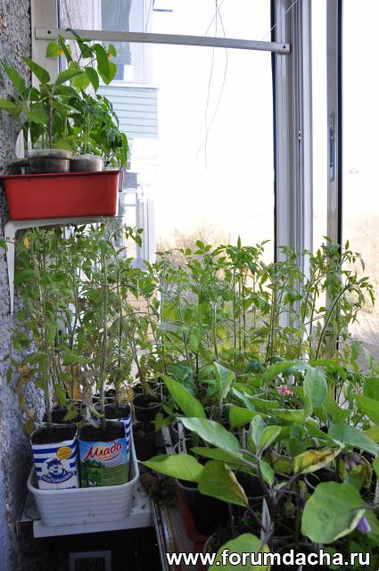 Рассада на балконе перерастает.