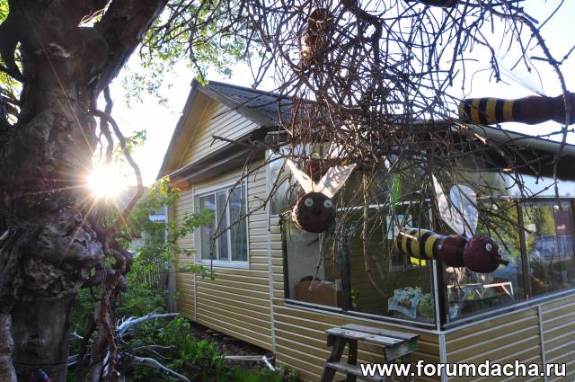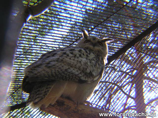 Сову пересадили на перголу т.к.сухая ветка на которой она сидела до этого рухнула.Никто не пострадал.