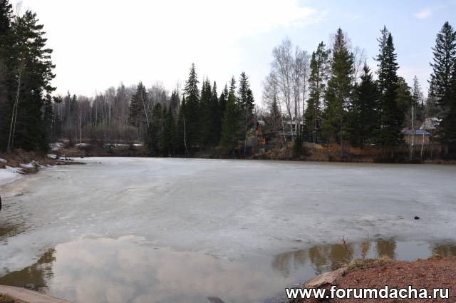 Озеро еще во льду.