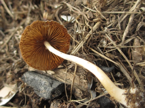А эти грибы постоянно через три-четыре дня появляются в теплице под кустом помидоров. Скорей всего тоже из навозников, но не уверена, смущает кругообразное расположение мицелия. Помогите, пожалуйста, разобраться, кто сможет.