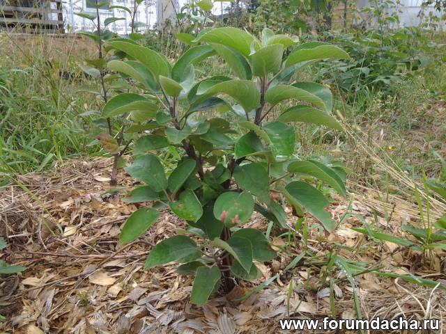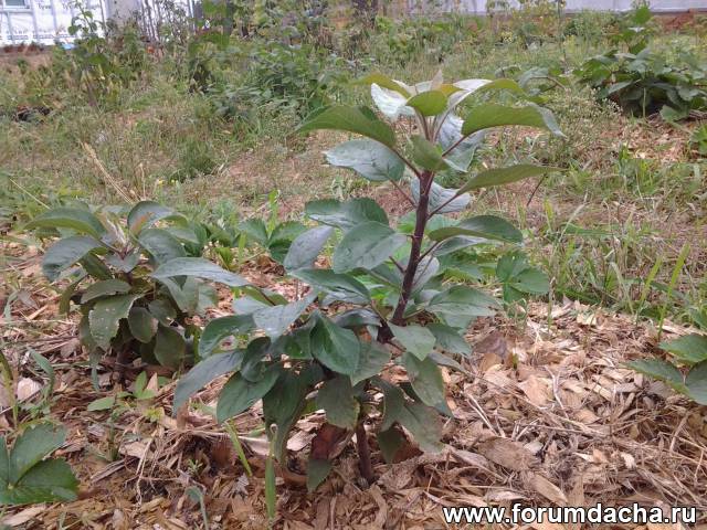 А эта растет в один ствол, но снизу опять же пошла дополнительная ветка.