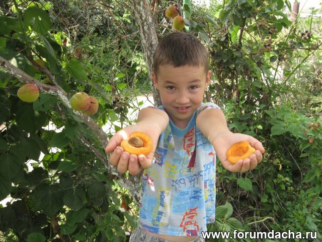 Абрикос плодоносит в среднем раз в три года(когда весна не слишком холодная во время цветения) и тогда уже собираем урожай ведрами. Абрикосы корнесобственные, посажены с южной стороны дома. Этот микроклимат позволяет им переносить морозы зимой. Нынче урожай небывалый. Сейчас закатываем из абрикос компоты, чуть позже будем варить варенье. Местные питомниководы не верят, что у нас такое возможно. Размножаю косточками и у покупателей тоже плодоносит, но только у тех, кто создает им микроклимат.