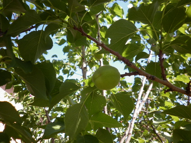 В этом сезоне, абрикос всё таки завязал плоды, хотя стояла холодная ветряная ненастная погода во время цветения. Потом, случился штормовой ветер, примерно неделю назад, что даже крыши посрывало. И от предполагаемого урожая остались лишь единичные плоды, что удержались на деревьях абрикоса. Остальные плоды побило и они осыпались. Хотя были уже размером 3 см в диаметре, примерно. Вот такой сезон неудачный для абрикоса. печалька, однако.