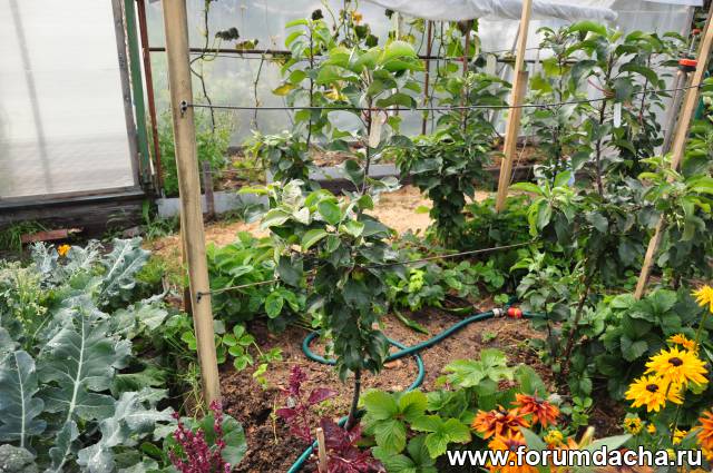 Однако, для своих условий я нашел решение: применил эффективную агротехнику на привитых сортах колоннах, привитых на сеянцы (зимостойких полукультурок и ранеток, гибридных Недзвецкого). При том любые! Но, предпочтение отдаю морозоустойчивым и устойчивым к СО (солнечным ожогам). Для нас это актуально. И формирую из таких подвоев скелет или прививаю в высокий штамб.. И деревья сортов колонн на них всё равно формируются компактно.. Но, при том остаются продуктивными, а не просто декоративными..