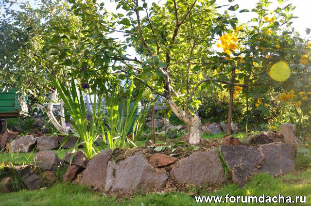 Уральское наливное.Все одиночные яблони и груши обложил камнями.Изначально Был положен навоз,сено и опилки,сейчас где то появились грибы целыми колониями,а где то еще нарастает мицелий.Где плодовых тел еще не было,подселяю миелий.