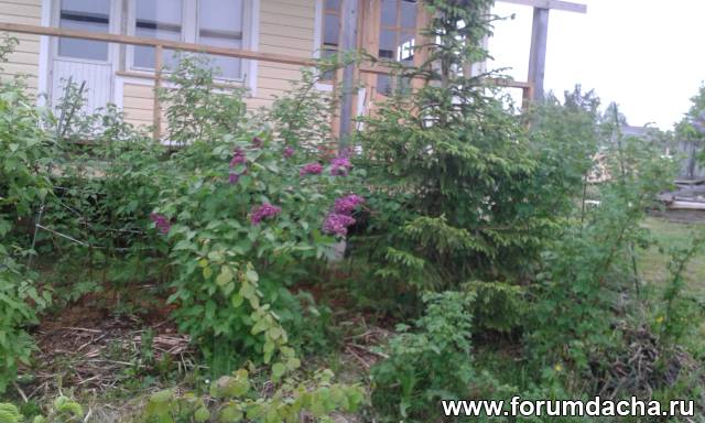 Мини модель лесосада: кроме малины здесь растут кусты черноплодки, черной смородины, сирени, несколько елей.. Земля укрыта подушкой из веток, сечки ,опилок.