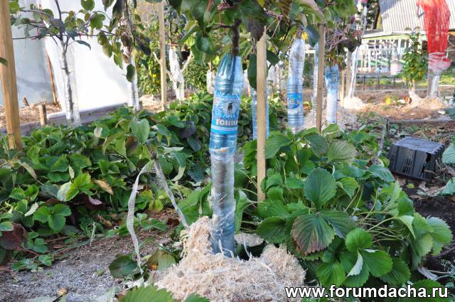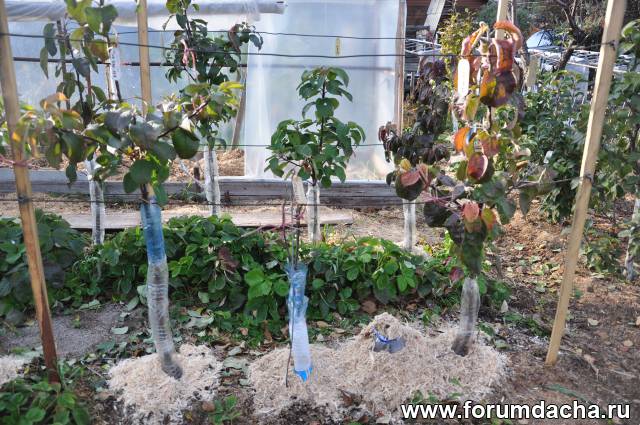 Низ закрыт бутылками,ветки,когда сбросят листья.замотаю сеткой,как этот боковой побег.