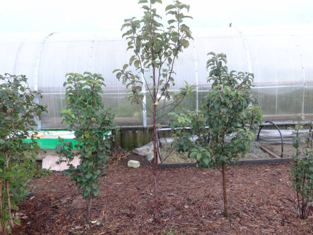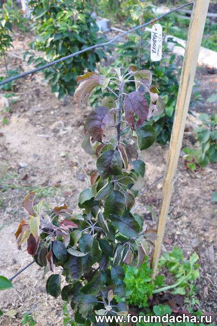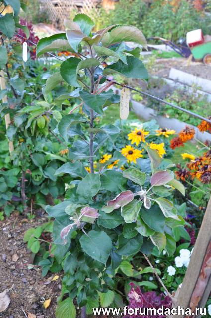 Саженцы колонновидных яблонь сейчас приблизительно такие же как и месяц назад (листья зеленые и продолжается рост новых)