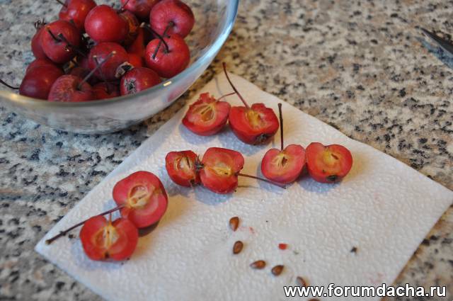 Собрал плоды краснолистных яблонь.Удивило что мякоть плодов красномясая.