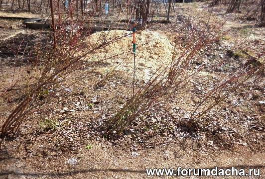 Сегодня посадил четыре куста голубики, сорта: Блюкроп, Бригитта, Hannah's choice. Под два куста сыпал серу, немного в лунку, немного в окружающую почву, два куста без серы замульчировал сосновым опадом. Два с серой - щепой фруктовых деревьев. Будем наблюдать.