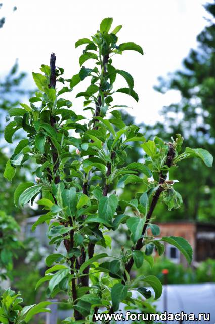 Вначале показалось, что процесс пошел, верхние почки начали раскрываться, но это все было за счет расходования возможностей самого черенка. Да, яблоня это не смородина и не розы.