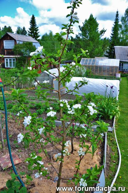| Первая яблоня-колонна бала мной посажена спустя год после приобретения участка, в 1999 году. Всего было 11 шт. Выжила одна, сорт на память не помню. Уточню когда выложу фото. Все погибали в результате почти ежегодных сильных повреждений стволов от морозобоин, побелка помогала слабо. Хотя сегодня я думаю, что это прежде всего нарушение природных условий жизни при традиционной технологии выращивания. |
