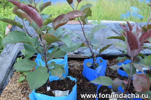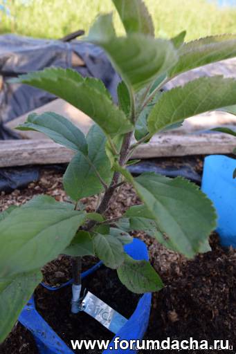 Вынужден выращивать все саженцы в контейнерах, поскольку в этом году переезжаем на новый участок, который пока еще не подготовлен к посадке. Важек планирую выращивать в открытом грунте с укрытием на зиму, в том числе и тот, что привит в крону колонновидной яблони.