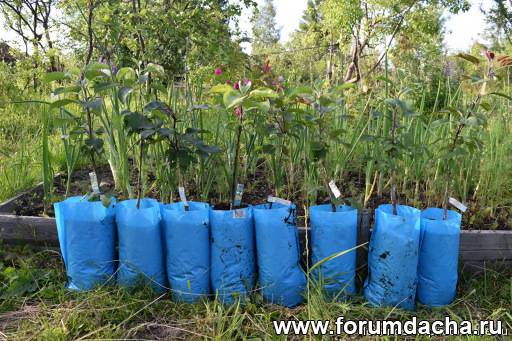 А ещё пояснили вот какой момент: саженцы, я так предполагаю, были присланы достаточно давно, потом были высажены во временные ёмкости и только недавно в грунт, так? А почему не сразу в грунт?