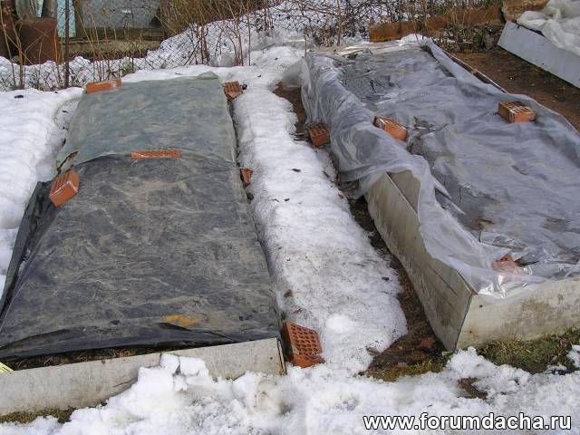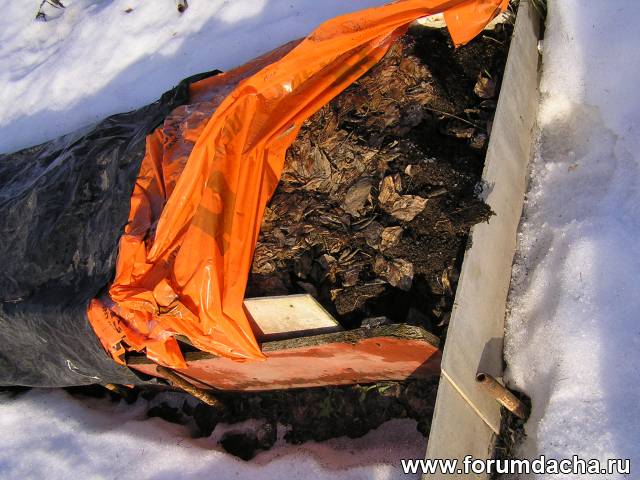 Активная мульча сама по себе теплая , если холодная то это просто мульча. Способы прогревания мульчи . Сыпать золу -песок -отсев на снег, для быстрого схода снега и непосредственно на мульчу .