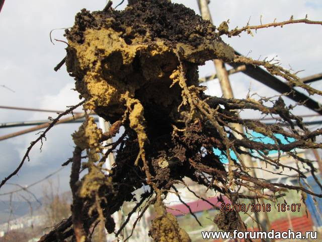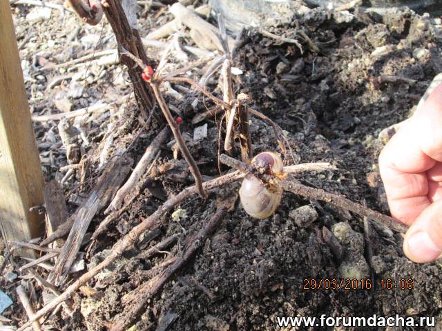 И тут вижу: снизу под корнями висит здоровенный жирный ХРУЩ челюстями вцепился в ветку-корень-палку и жрётттт!!! От , думаю, случай обидный: я ж Александру Ивановичу излагал, свою теорию. Что если гнилой органики много, то хрущи корни растений не повреждают, а едят только гнилушки. Беру я тот "корешок" в который вцепился хрущ и тяну..... тяну.... тяну, а это гнилая палочка , а не корень виноградный!!!