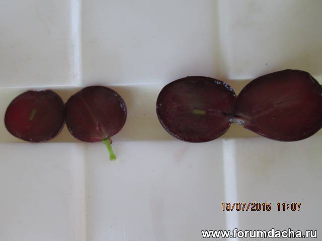 На ветке "Селекция" я описывал почти пошагово, как нарождался новый сорт винограда. Я дал ему имя Подопригора. Конечно я буду продолжать его испытания. А пока хочу добавить ещё кое какую информацию. Вот фото ягод, видны малюсенькие рудименты