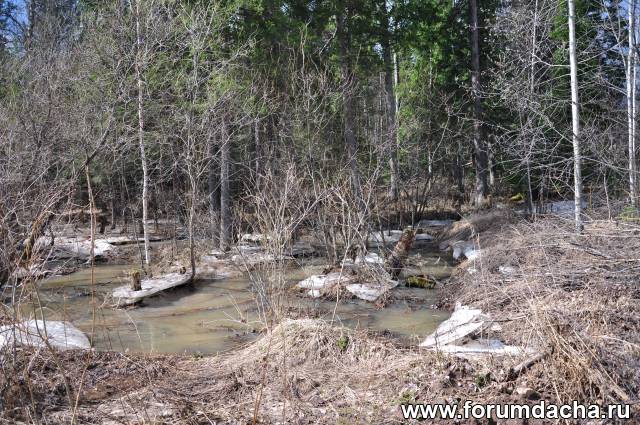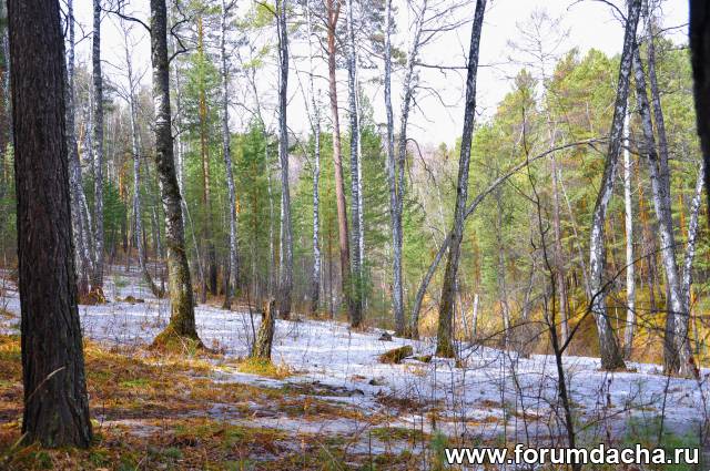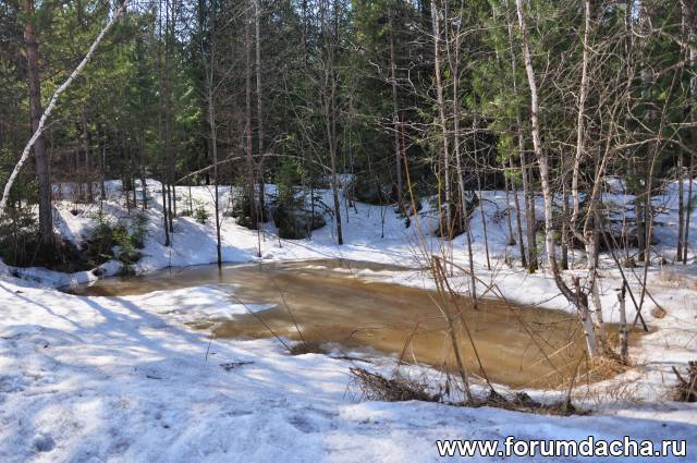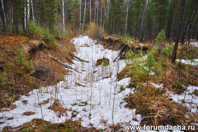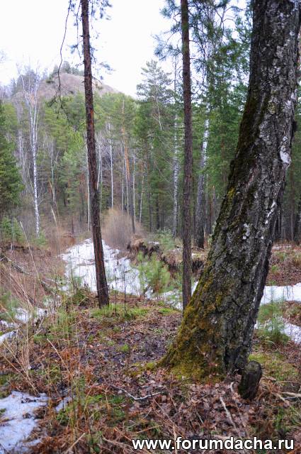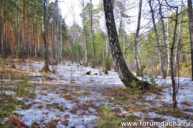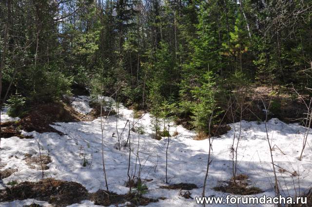 Участок вытаял пятнами.Где то еще снег но есть и прогалины.
