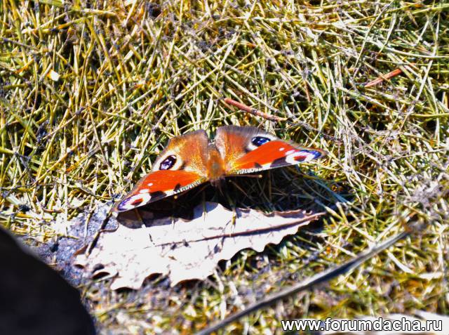 На прогалину свободную от снега прилетела эта красавица.Летали три бабочки.