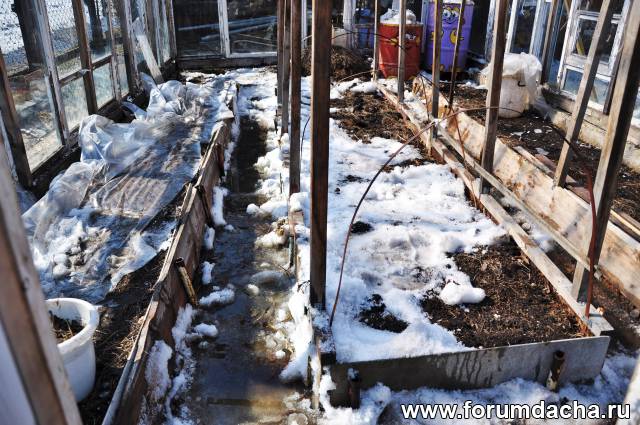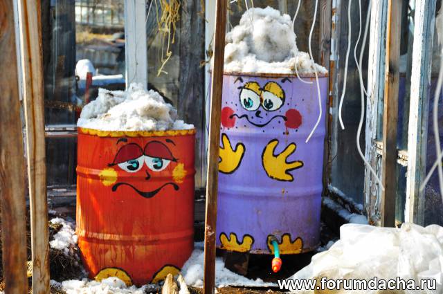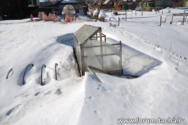 Теплицу накрыли две недели назад.Накидал две бочки снегом.