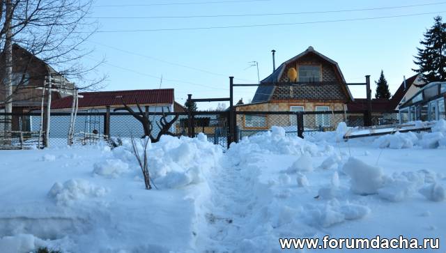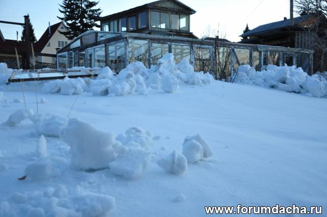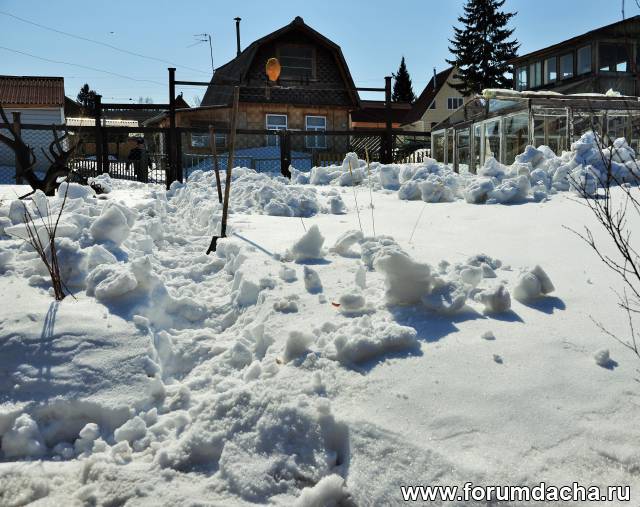 Снег в этом году как бетонная плита лег на весь огород.Свободно можно ходить-это в первые на моей памяти.Чистится с трудом,на глубине 20 см.слой льда 5 см.Можно ожидать много поломанных растений.Колонны не зря привязал к шпалерам.