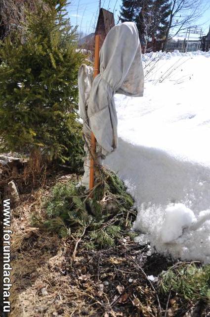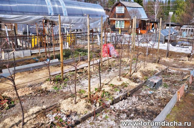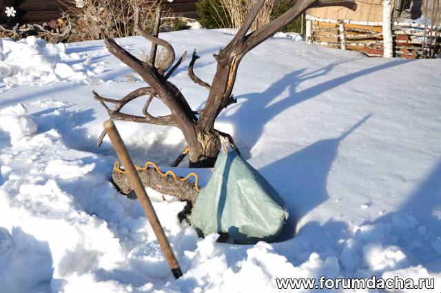 Вокруг колонн снег вытаял ,засыпал снег золой,что бы быстрей протаяло .Распаковал абрикосы,обрезал до здоровой древесины.