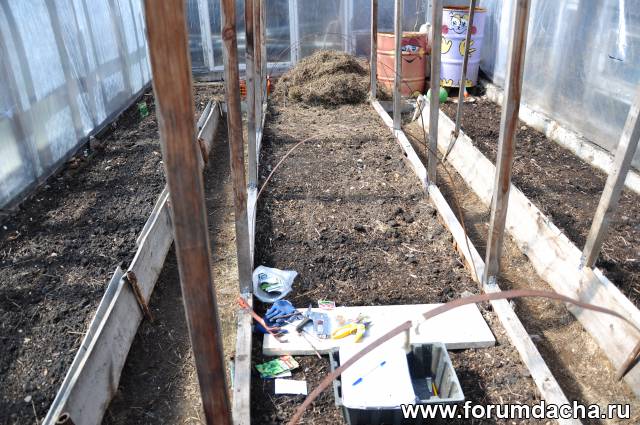 В теплицах собрал мульчу в кучку(потом разложу) и посеял зелень,кукурузу,подсолнухи.цветы.