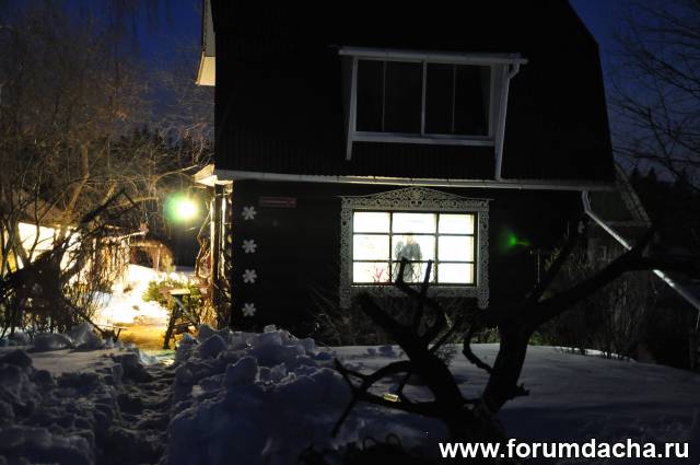Домик еще другого цвета,Фронтоны не обшиты сайдингом,крыша старая,Нет еще ни горки ни елочки.