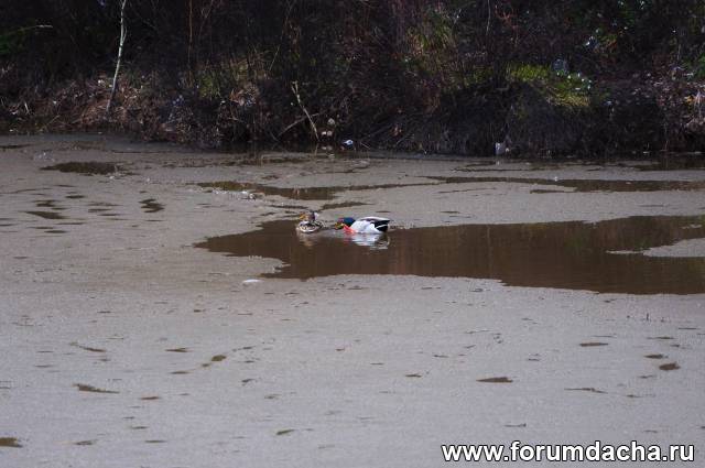 На озере еще шуга,уточки как ледоколы раздвигают ее,когда плывут.