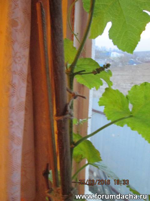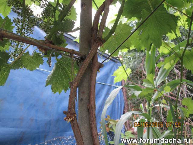 Вот так выглядит Подопригора высаженный по технологии Кузнецова. Как видите он опылился, завязал ягоды. А так как у него забег по времени, то ягоды его размером с горошину на момент цветения винограда который живёт всё время под открытым небом.