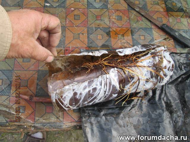 А вот фото корневой у саженцев, выращенных в плёночных цилиндрах из чёрной плёнки по методу А. Кузнецова в стружке.