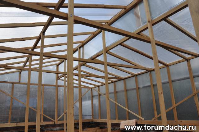 Сегодня закончил каркас,ушло 3 дня.Скаты сделал ассиметричными,Южный 3 м.северный 1.5 м.Чтобы тепличка сильнее прогревалась.
