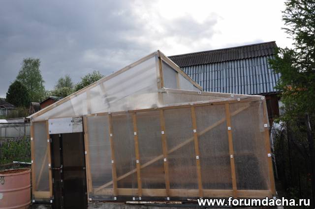 Теплица, хороша, но как будет держать снеговую нагрузку? Уменя заводская из квадратной трубы дуги, этой зимой каркас держал, но стал проседать сам поликарбонат хотя и 4,5 мм. Сбрасывал снег.