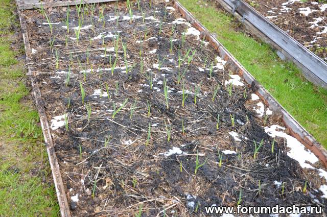 Чеснок из под морковной мульчи вышел дружно.Посадил 1200 зубцов.