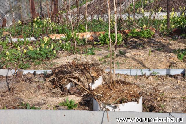 Вот таким способом сажу все,За сезон обкладываю,травой,листьями,опилками.В этот раз посадил малину "Гусар"жимолость,Юргу,Пионы.