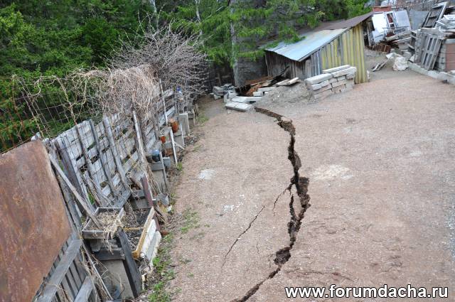 Вот эта бетонная крепость дала трещину,падает в обрыв.Че то эта красота богу не понравилась и он начал ее разрушать.