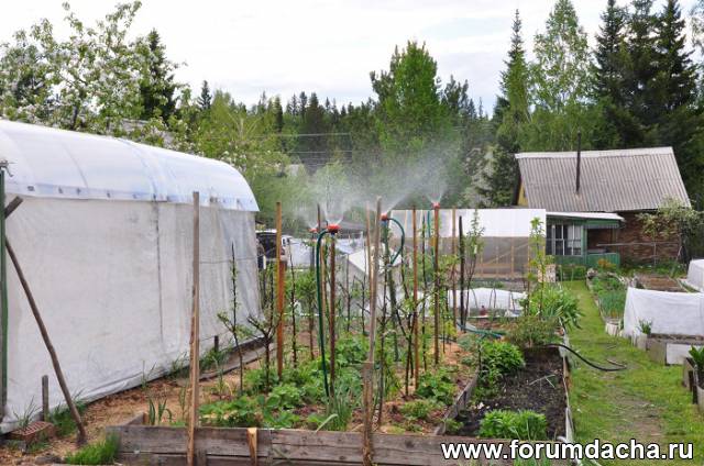 Все хорошо растет, справа под укрывным кабачки и тыквы.