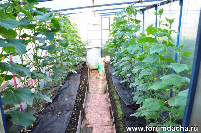 Соседские огурцы.они бывают наездами поэтому в качестве мулчи укрывной черный материал.