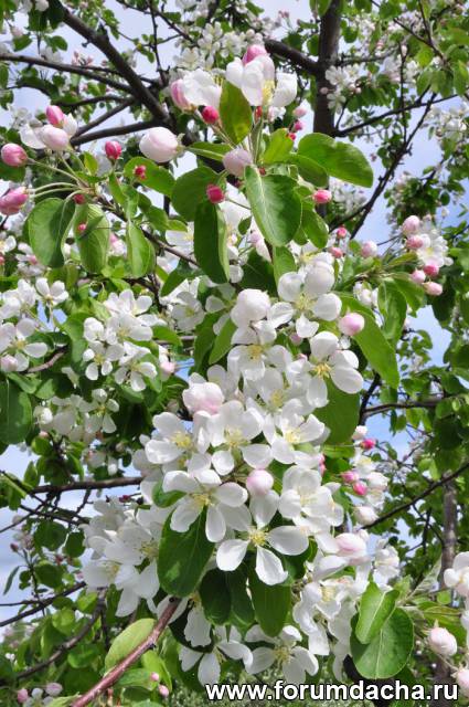 Взрослые яблони уже цветут.