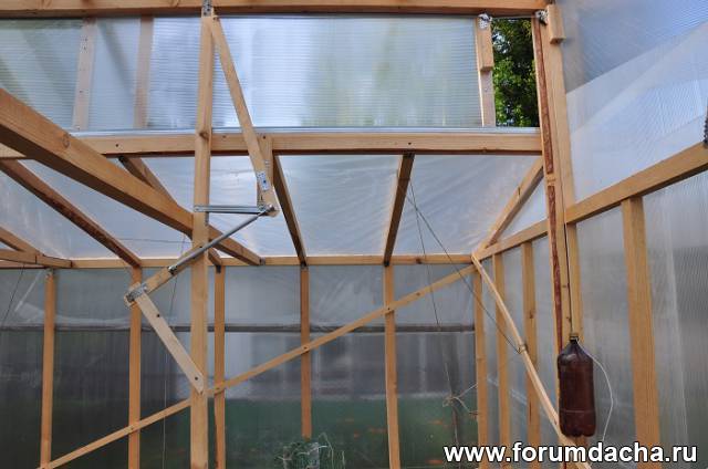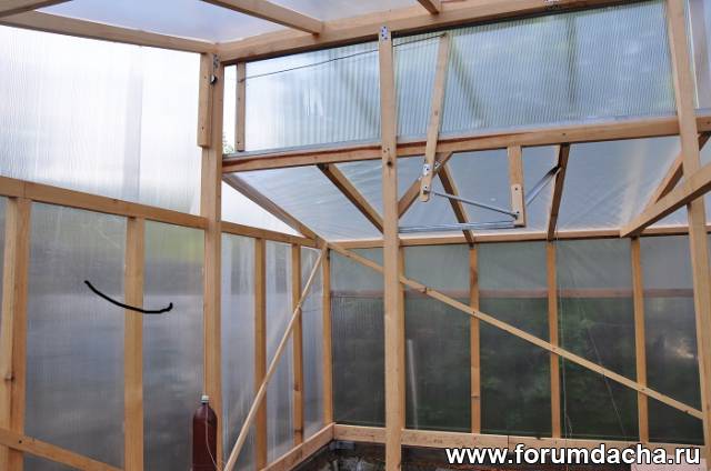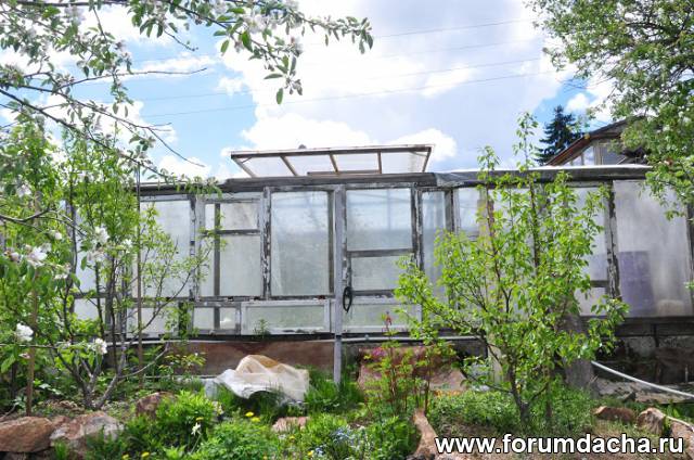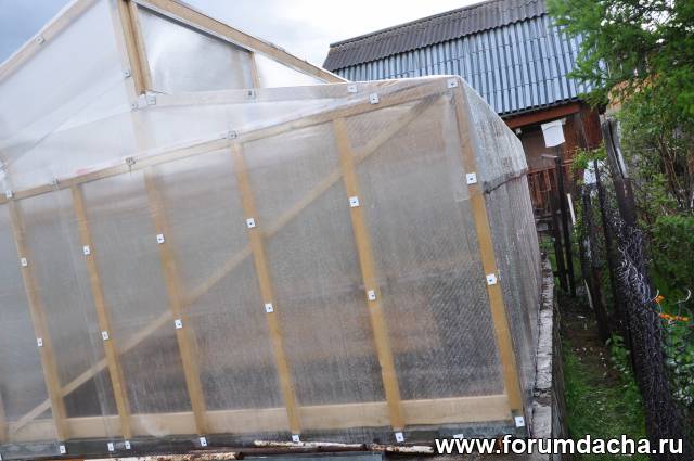 Зима конечно покажет,но длинный скат делал,как у соседей,у них снег не держится и зиммой сильный ветер.Короткий скат накрыт пленкой,на зиму ее просто сверну не снимая.Это сделал для того чтобы не накидывать снег вручную-тяжеловато.