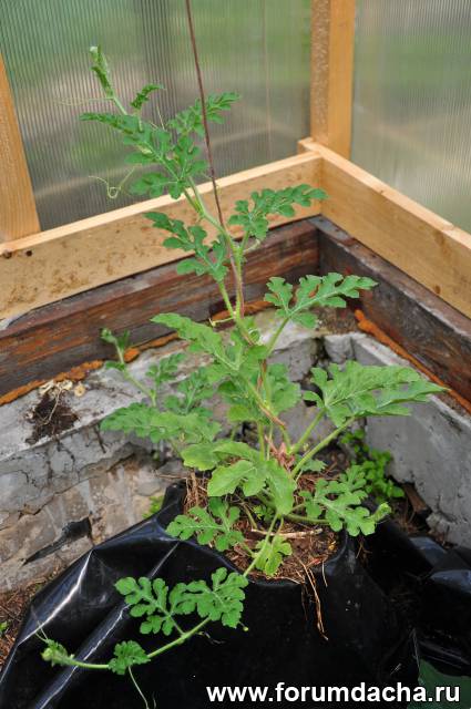 Арбуз растет медленно по сравнению с огурцами.