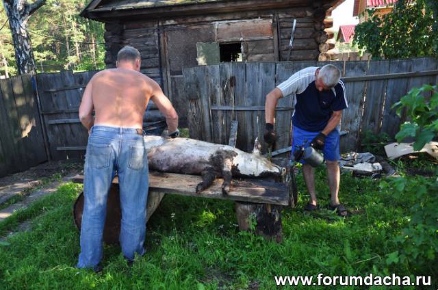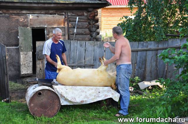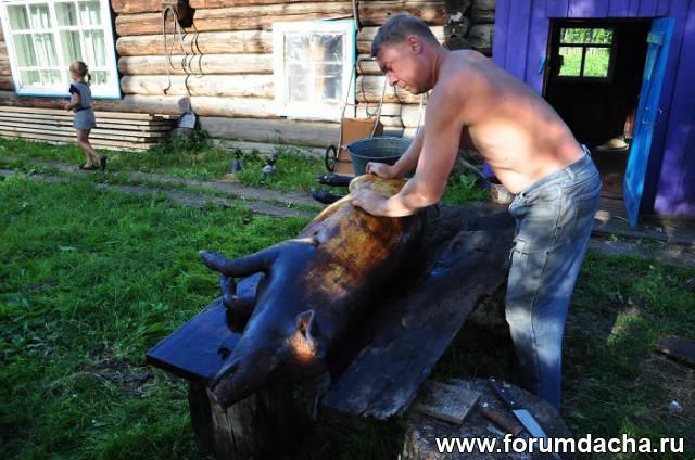 Я городской житель впервые видел как обрабатывается поросенок.Сначала проходится паяльной лампой и ножом соскабливается щетина.