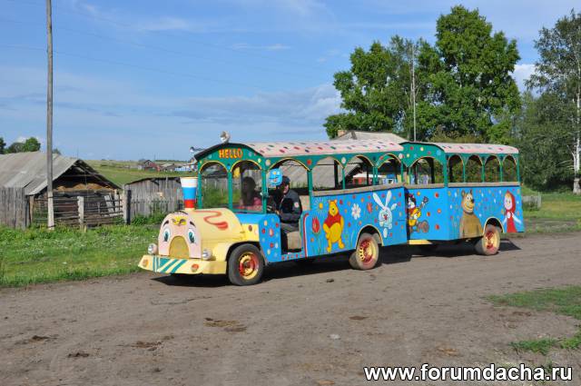 Приехали в Георгиевку-вот такое чудо! Из копейки с прицепом сделали паровозик.50 руб. билет.Люди пытаются хоть как заработать.