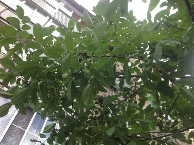 Еще у меня растут 4 ореха грецких, 2 сердцевидных, 4 черных от Васина из Тулы. 4 ореха от Александра из Бронниц.  это орех от Александра, растет у родственников в соседней деревне.