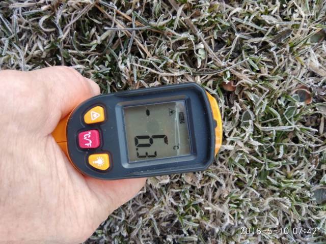 Мой пирометр врет на пару градусов.Холмики Персика и Абрикоса ПГСа крупного насыпал и смешал с землей.И абрикос проснулся первый по сравнению у который не насыпал..Явный толк.Но заморозки в самарской были ночью.Сегодня к нам могут прийти.