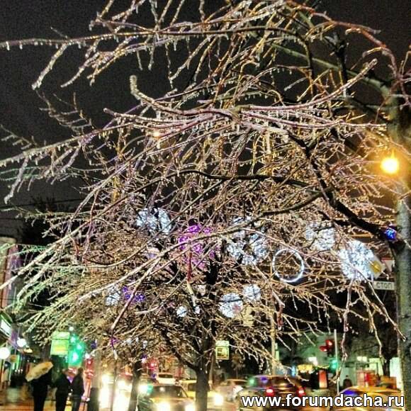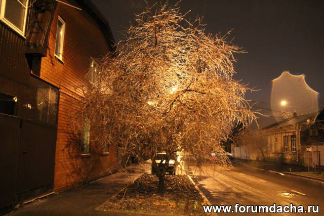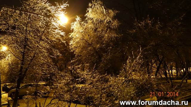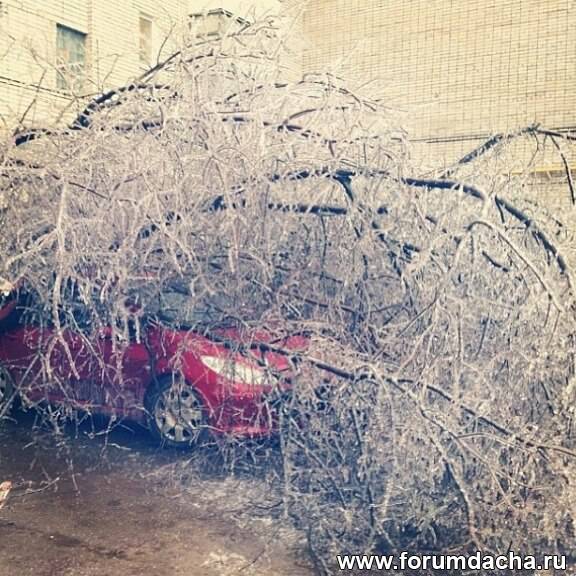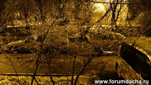 В 4 утра, сегодня, разбудила сигнализация машины моей. Рядом упало дерево и, объезжающая его машинка, немножко задела мою. Совсем немножко, только ледок с бампера сняла. На улице было очень красиво, стеклянные деревья, пощелкивающие звуки от стеклянных деревьев при покачивании, приятный морозец, хорошее настроение, захотелось сфотографировать, что и сделала. Пару фоток выкладываю. Хотя на фото не видно всей красоты.