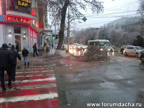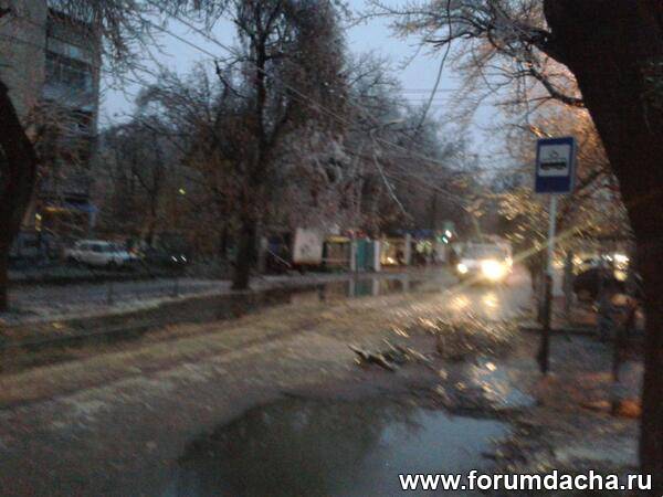 В Краснодаре ад с утра, все во льду, деревья, дороги, провода. Трамваи-троллейбусы не ходят, не знаю, везде ли
